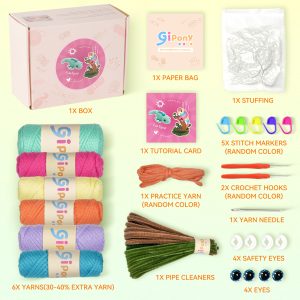 🛍️ Kit Includes All You Need – This crochet kit for beginners has an ergonomic crochet hook, beginner-friendly yarn, stitch markers, safety eyes, blunt needle, stuffing, PDFs, and video instructions.