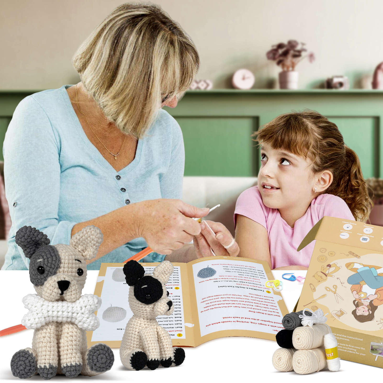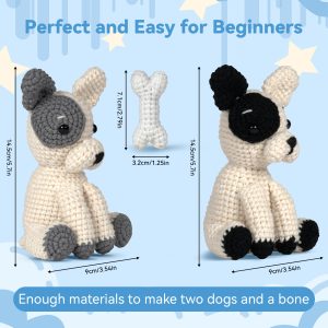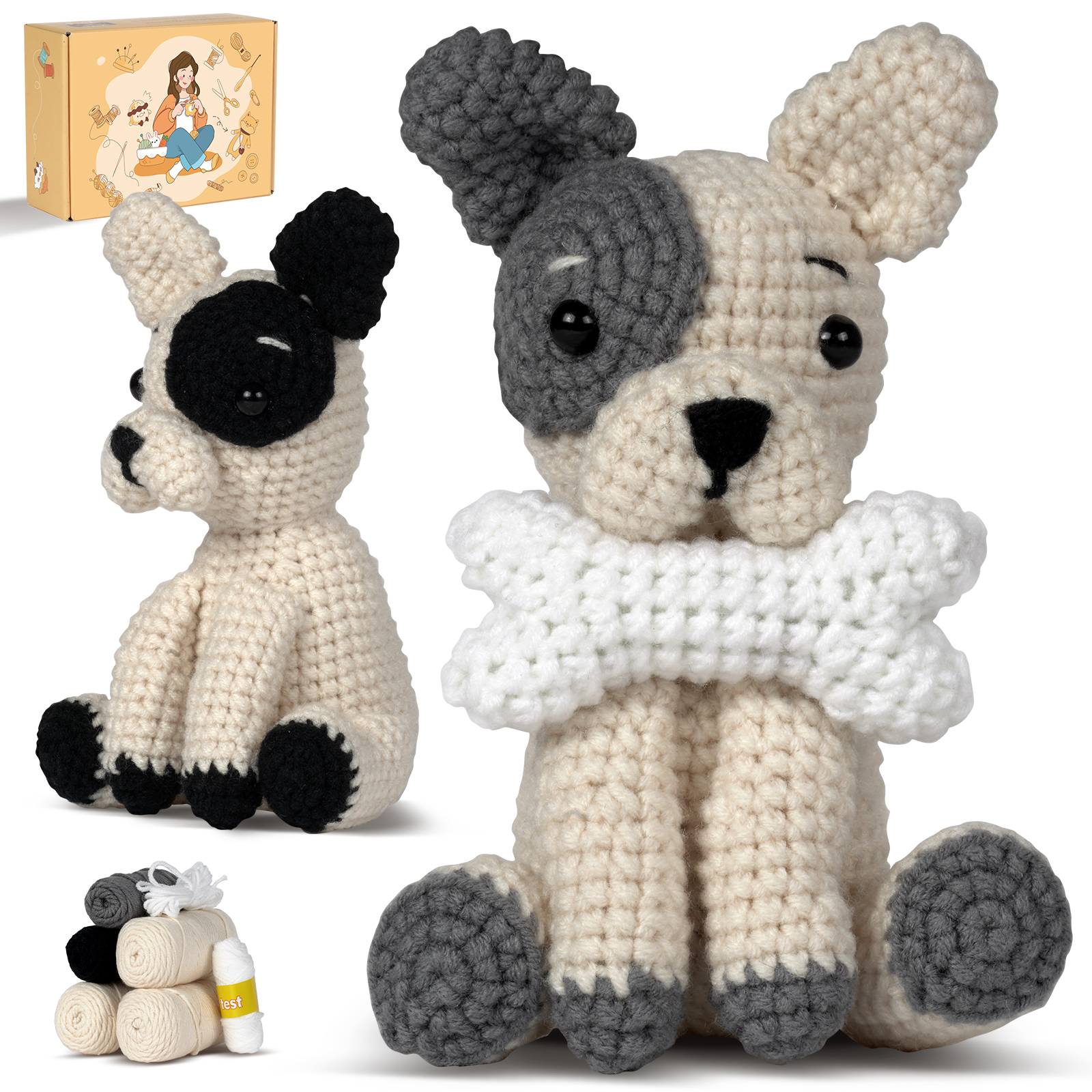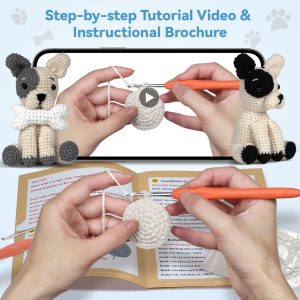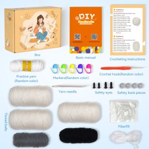 🛍️ Kit Includes All You Need – This crochet kit for beginners has an ergonomic crochet hook, beginner-friendly yarn, stitch markers, safety eyes, blunt needle, stuffing, PDFs, and video instructions.