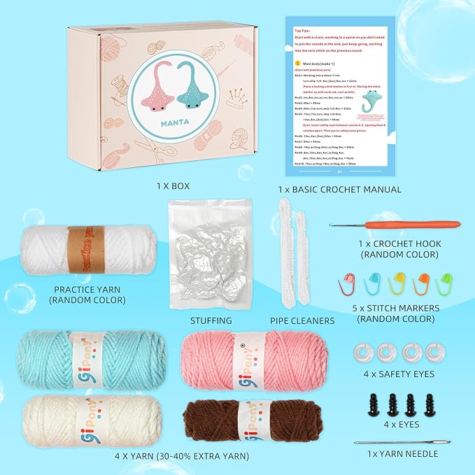 🎁 Perfect Gift – This crochet kit is a fantastic gift for anyone who loves hands-on activities. Ideal for Christmas, birthdays, holidays, or just because.