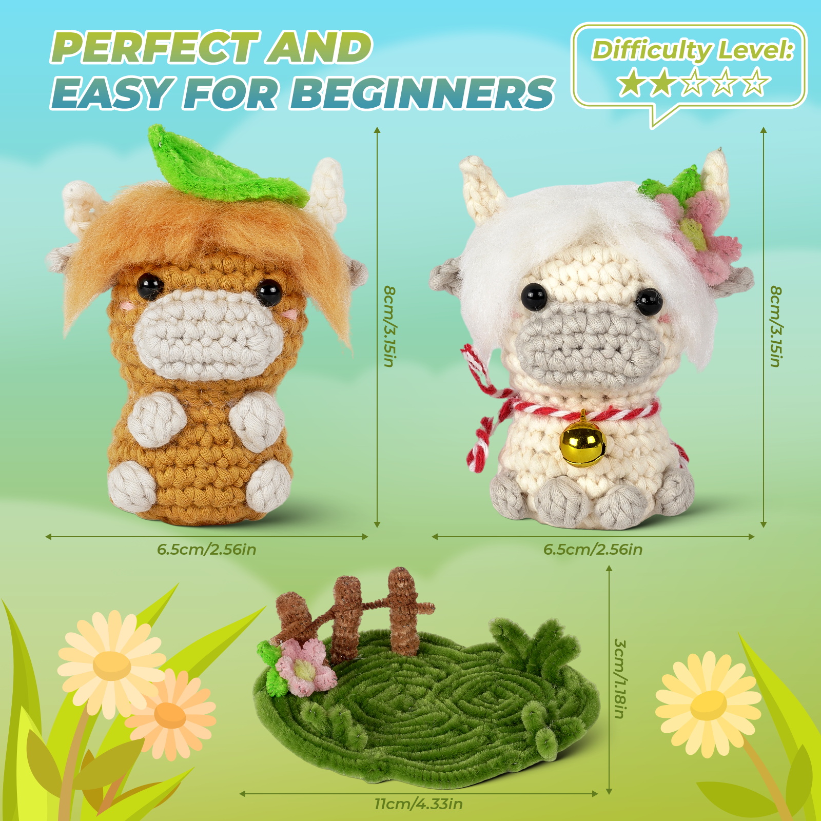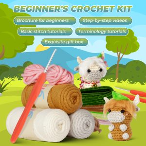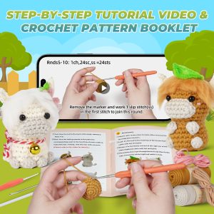 🛍️ Kit Includes All You Need – This crochet kit for beginners has an ergonomic crochet hook, beginner-friendly yarn, stitch markers, safety eyes, blunt needle, stuffing, PDFs, and video instructions.