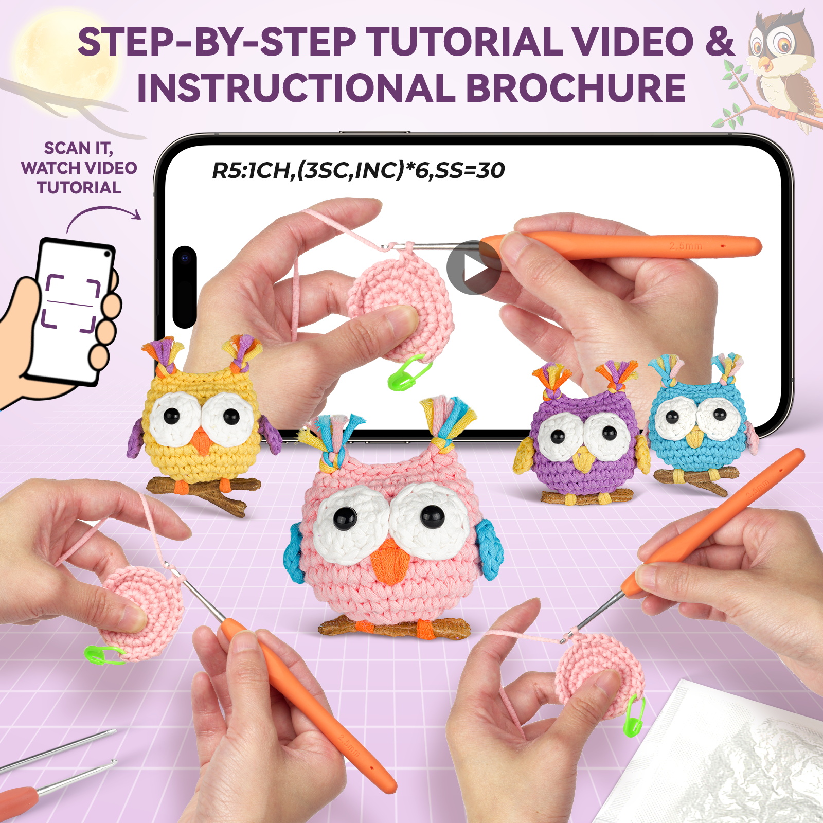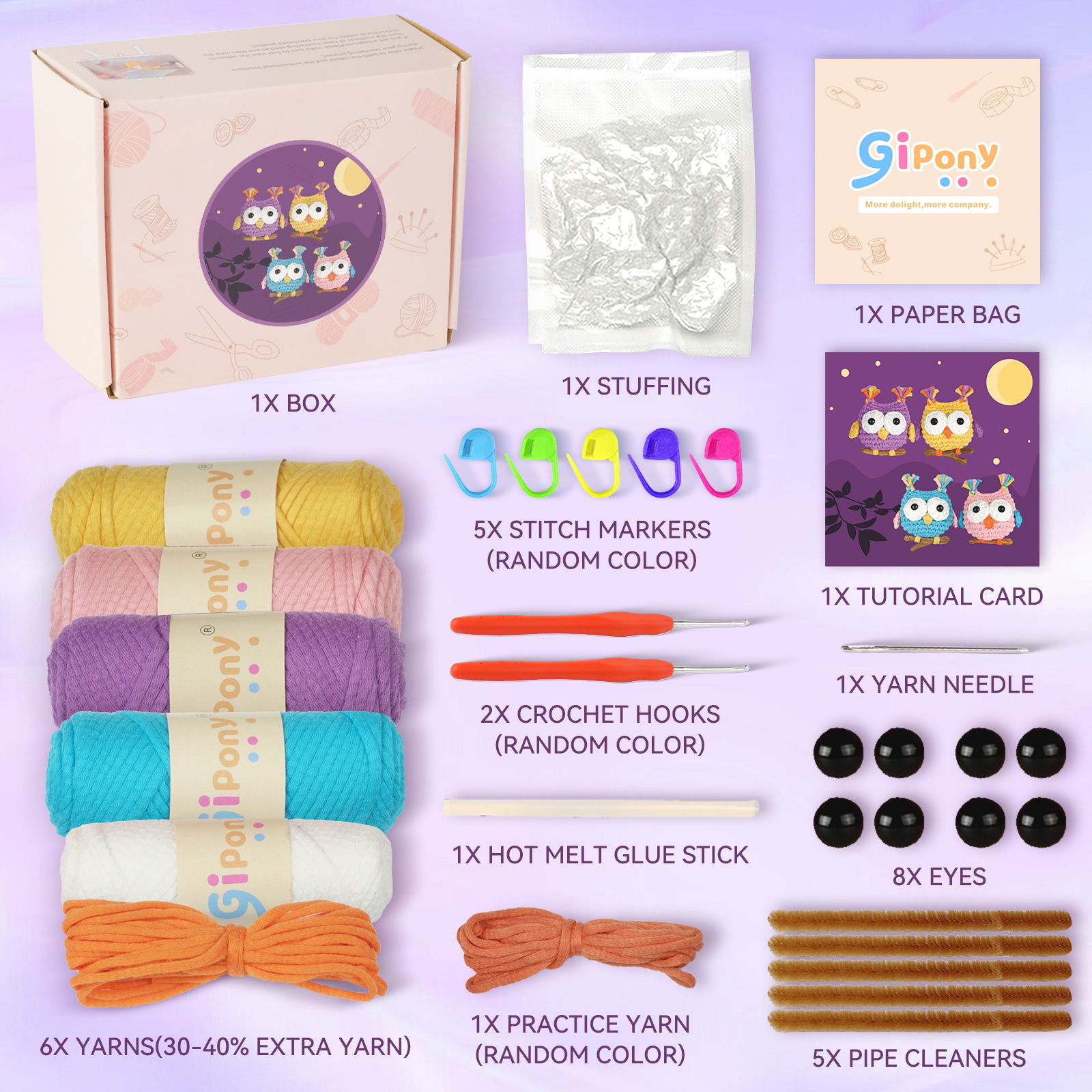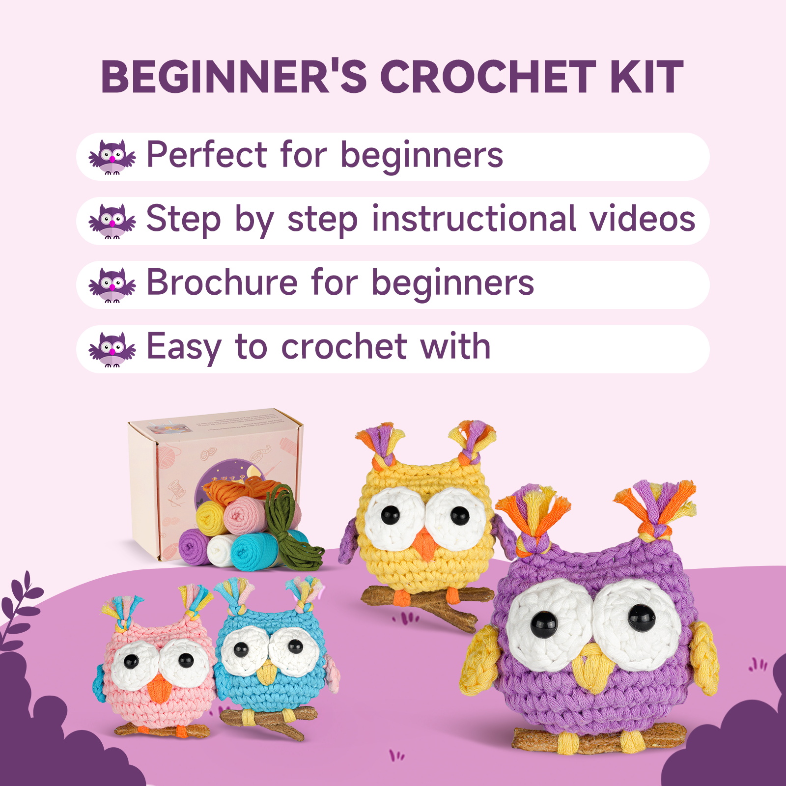 🛍️ Kit Includes All You Need – This crochet kit for beginners has an ergonomic crochet hook, beginner-friendly yarn, stitch markers, safety eyes, blunt needle, stuffing, PDFs, and video instructions.
