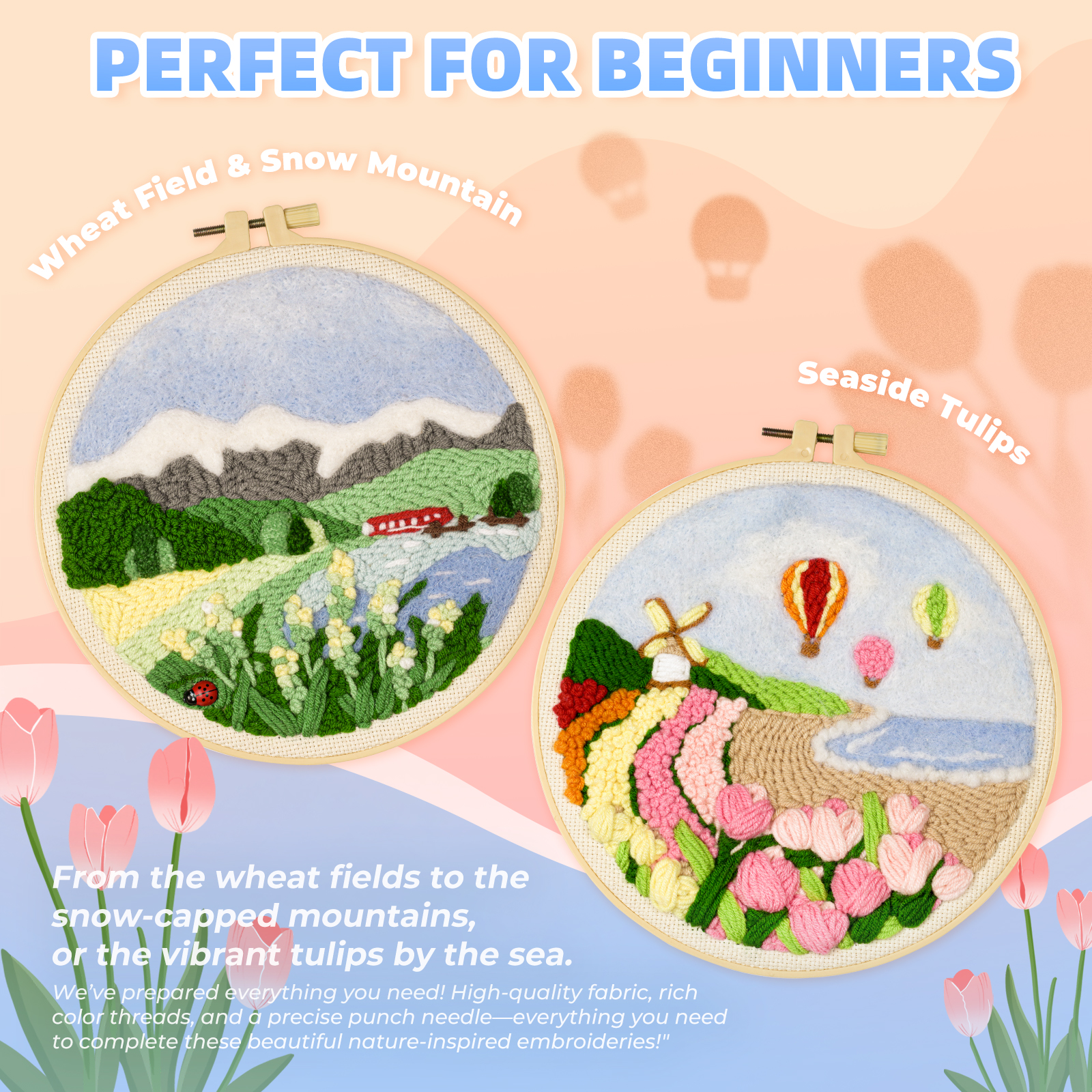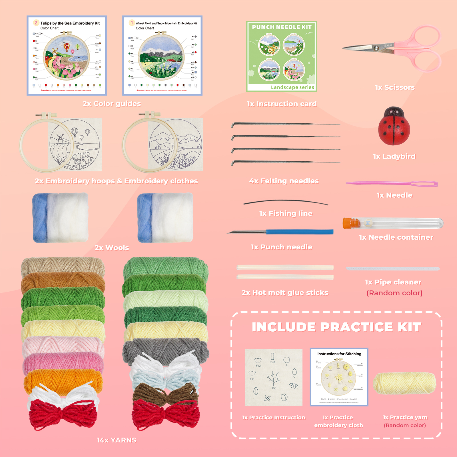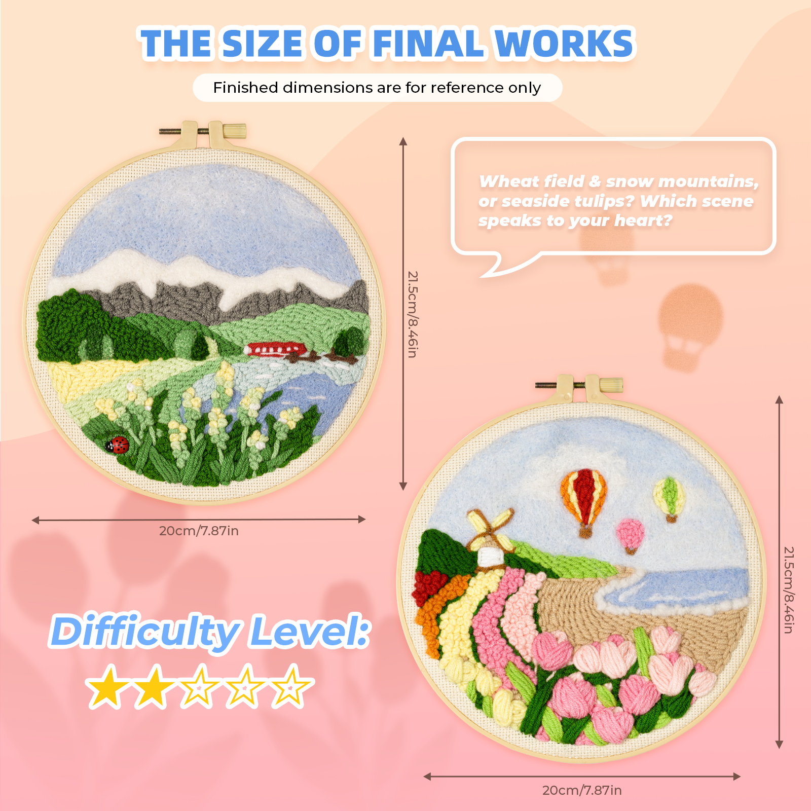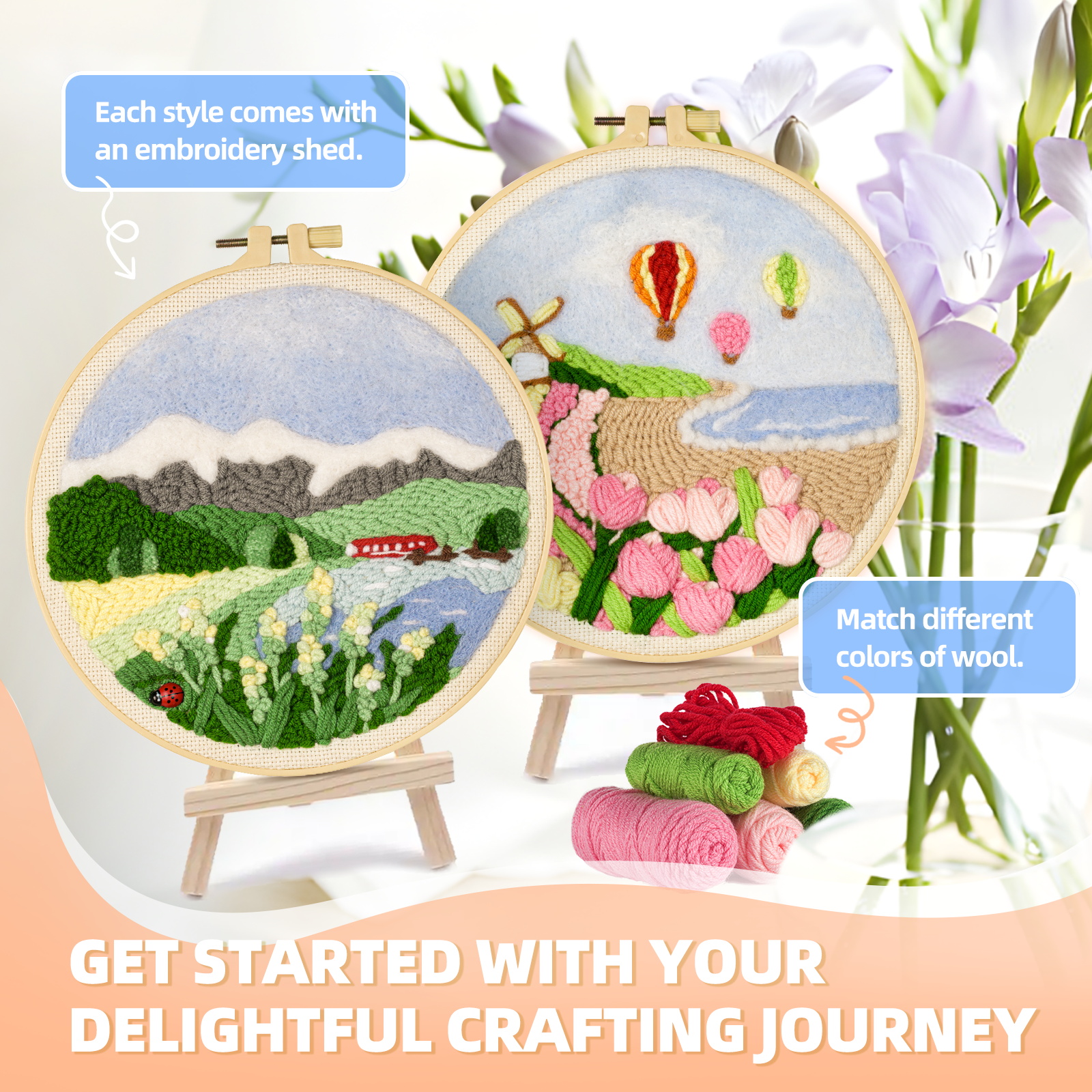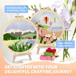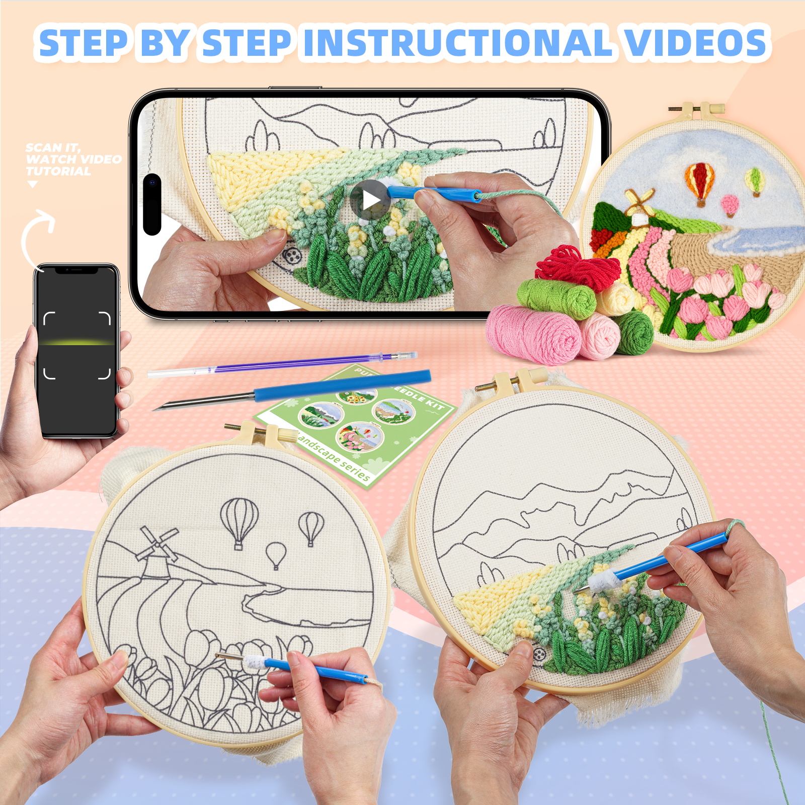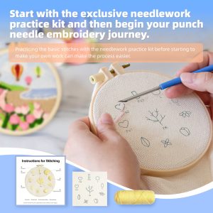 🛍️ Kit Includes All You Need – This beginner-friendly punch needle kit comes with high-quality embroidery cloth, colorful yarn, a punch needle tool, a threader, an embroidery hoop, and detailed PDF stitch instructions along with video tutorials. Everything you need is included — ready to use straight out of the box!