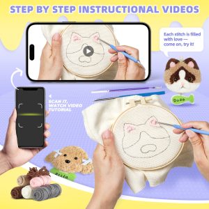 🛍️ Kit Includes All You Need – This beginner-friendly punch needle kit comes with high-quality embroidery cloth, colorful yarn, a punch needle tool, a threader, an embroidery hoop, and detailed PDF stitch instructions along with video tutorials. Everything you need is included — ready to use straight out of the box!