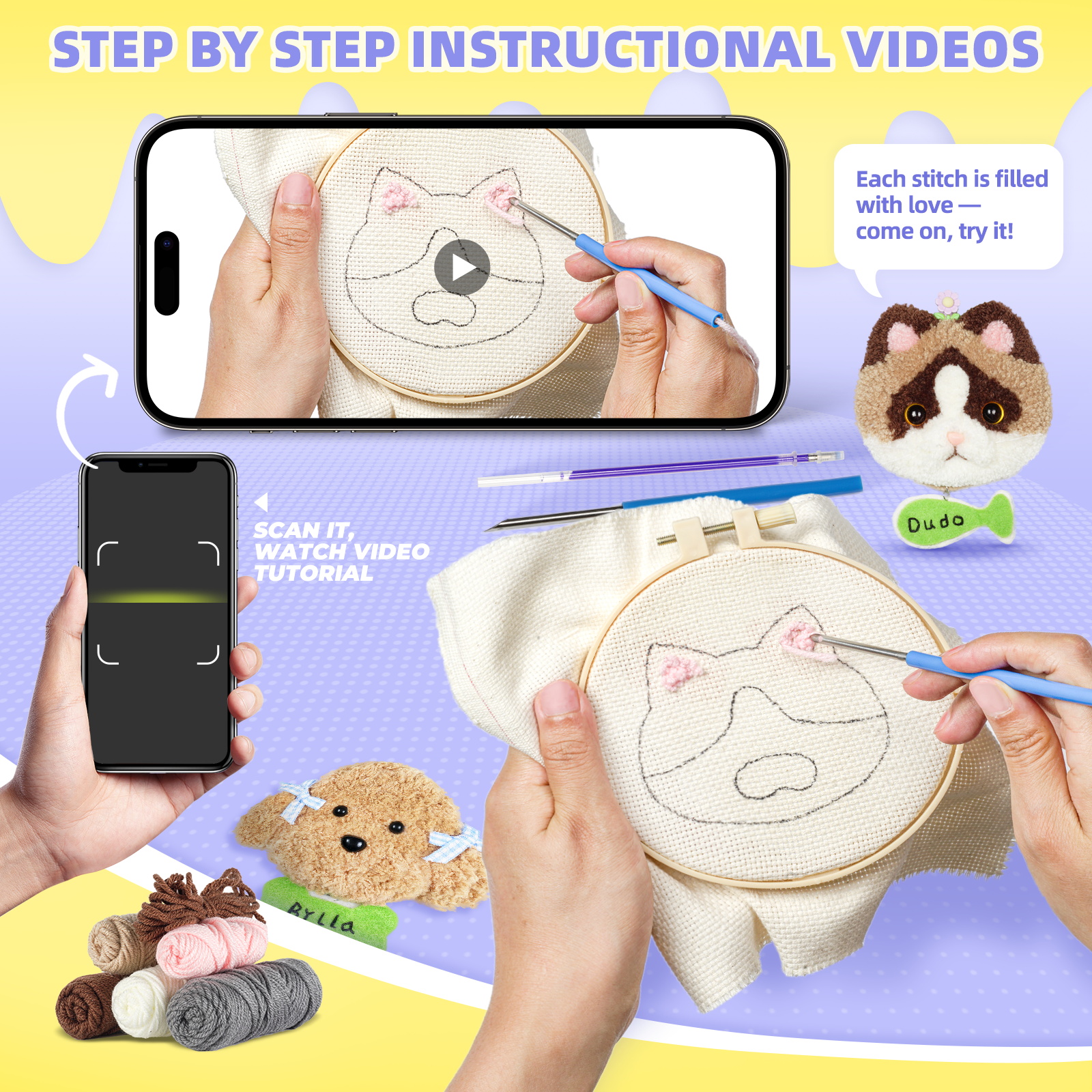 🎥 1+ Hours Video Tutorial – Easy-to-follow and beginner-friendly video instructions guide you through the entire punch needle process from start to finish. The video includes clear narration with no distracting background music, well-organized chapters for easy navigation, and adjustable playback speed to suit your learning pace.