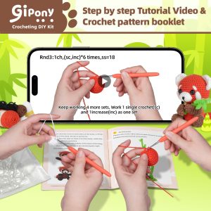 🛍️ Kit Includes All You Need – This crochet kit for beginners has an ergonomic crochet hook, beginner-friendly yarn, stitch markers, safety eyes, blunt needle, stuffing, PDFs, and video instructions.