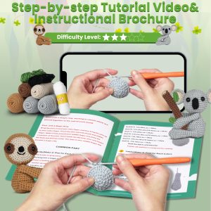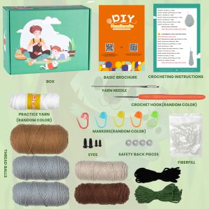 🛍️ Kit Includes All You Need – This crochet kit for beginners has an ergonomic crochet hook, beginner-friendly yarn, stitch markers, safety eyes, blunt needle, stuffing, PDFs, and video instructions.