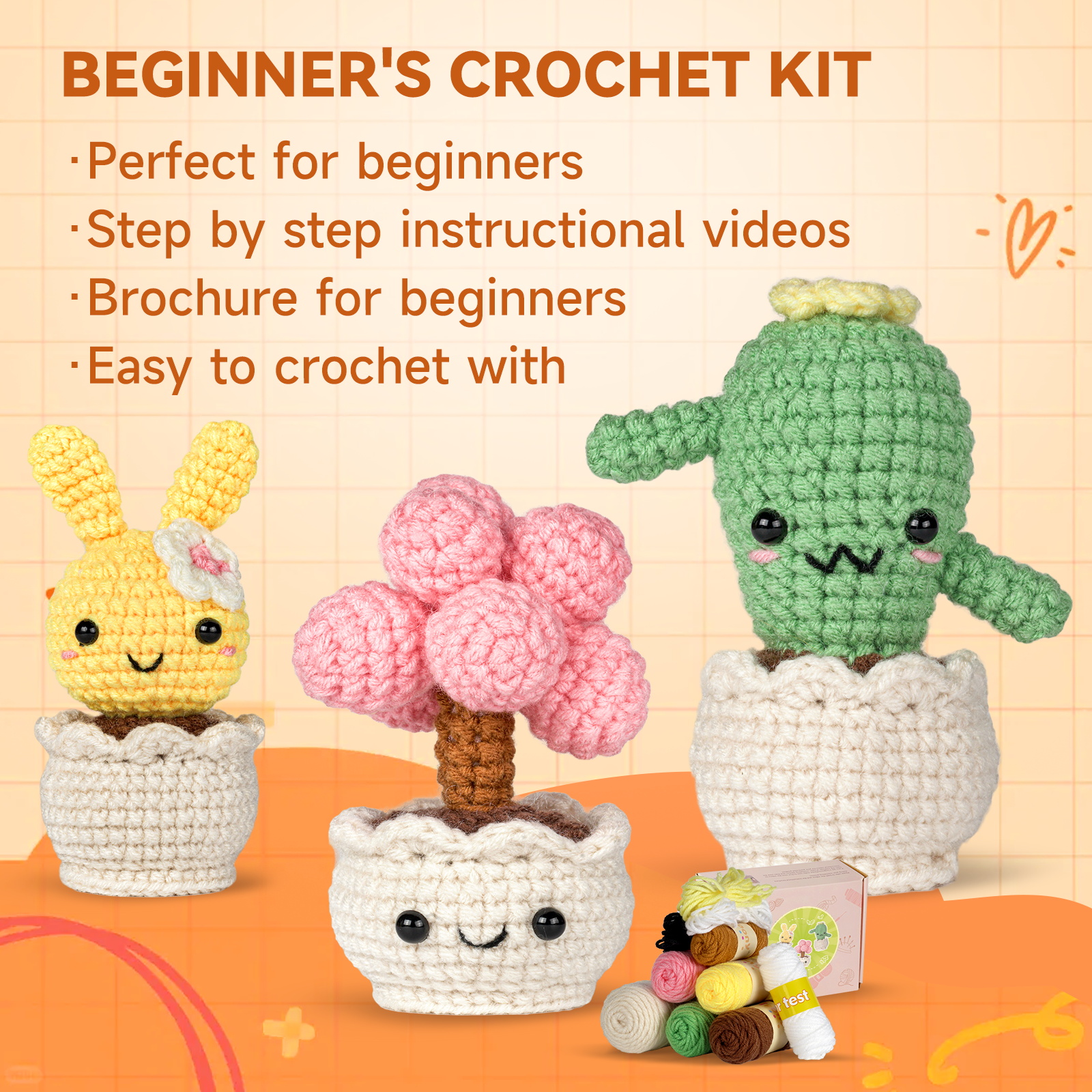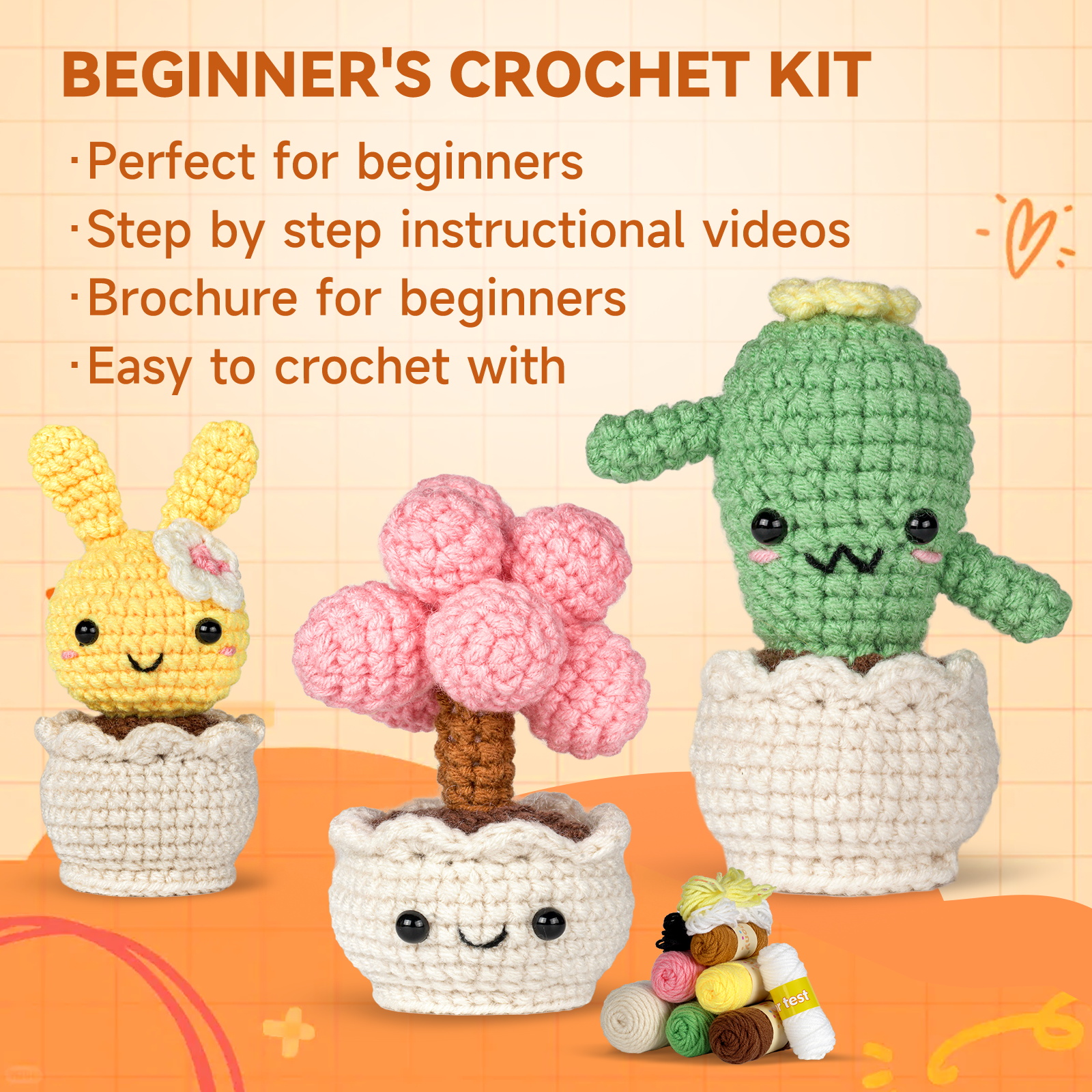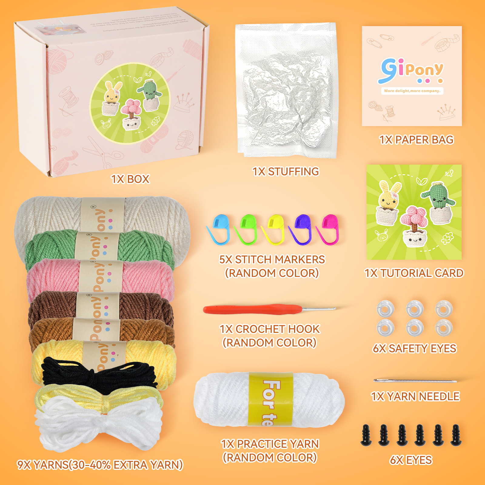 🛍️ Kit Includes All You Need – This crochet kit for beginners has an ergonomic crochet hook, beginner-friendly yarn, stitch markers, safety eyes, blunt needle, stuffing, PDFs, and video instructions.