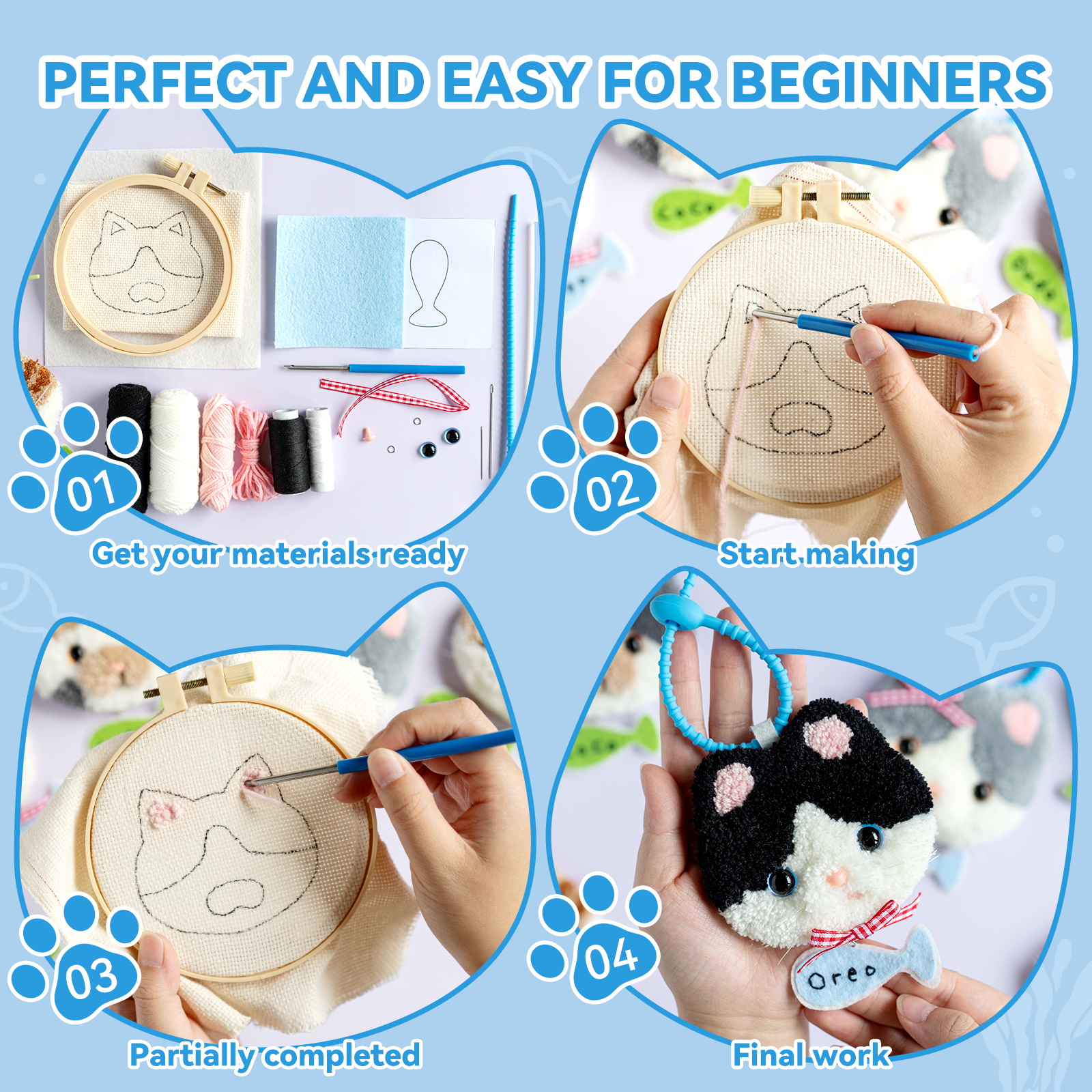 🛍️ Kit Includes All You Need – This beginner-friendly punch needle kit comes with high-quality embroidery cloth, colorful yarn, a punch needle tool, a threader, an embroidery hoop, and detailed PDF stitch instructions along with video tutorials. Everything you need is included — ready to use straight out of the box!