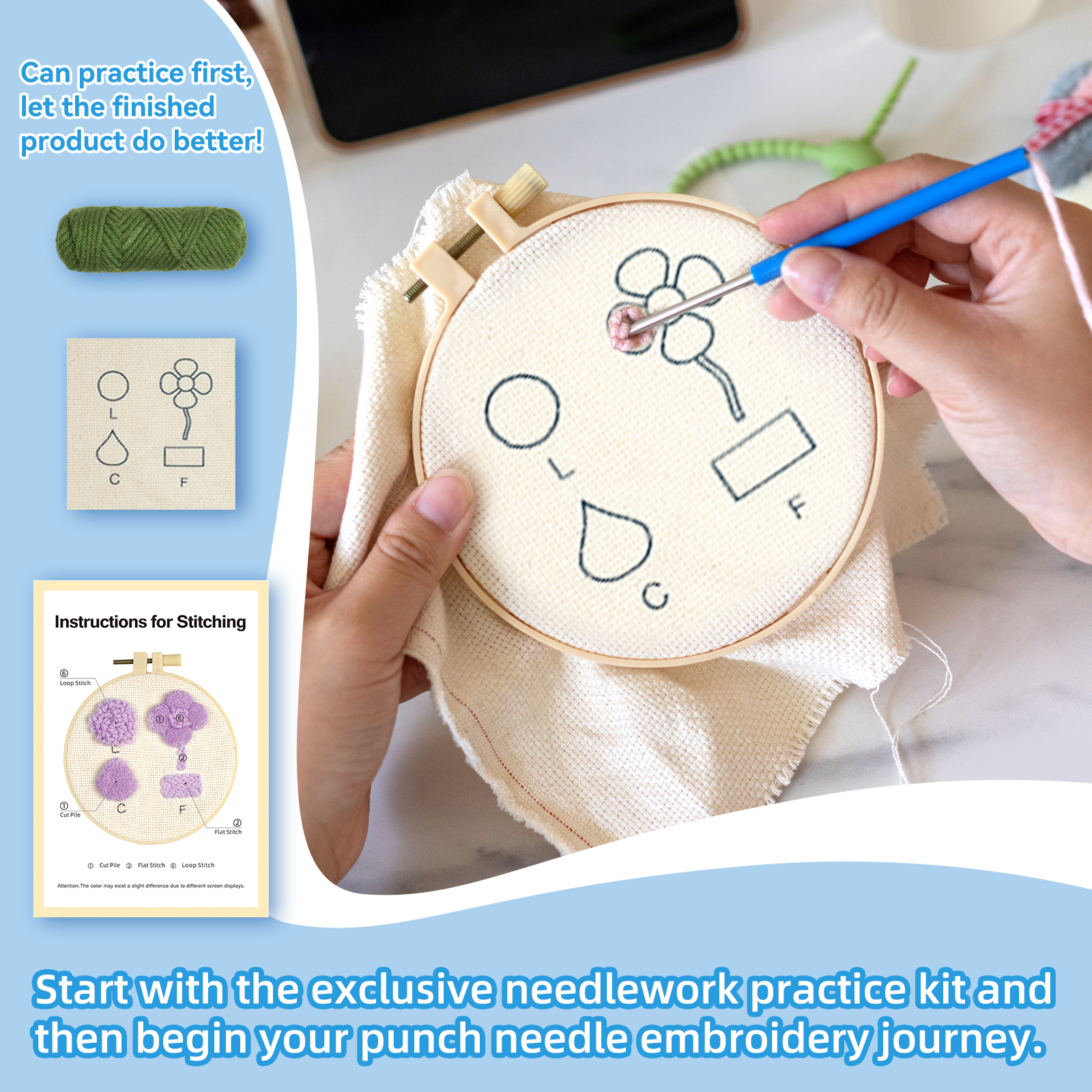 🎥 1+ Hours Video Tutorial – Easy-to-follow and beginner-friendly video instructions guide you through the entire punch needle process from start to finish. The video includes clear narration with no distracting background music, well-organized chapters for easy navigation, and adjustable playback speed to suit your learning pace.