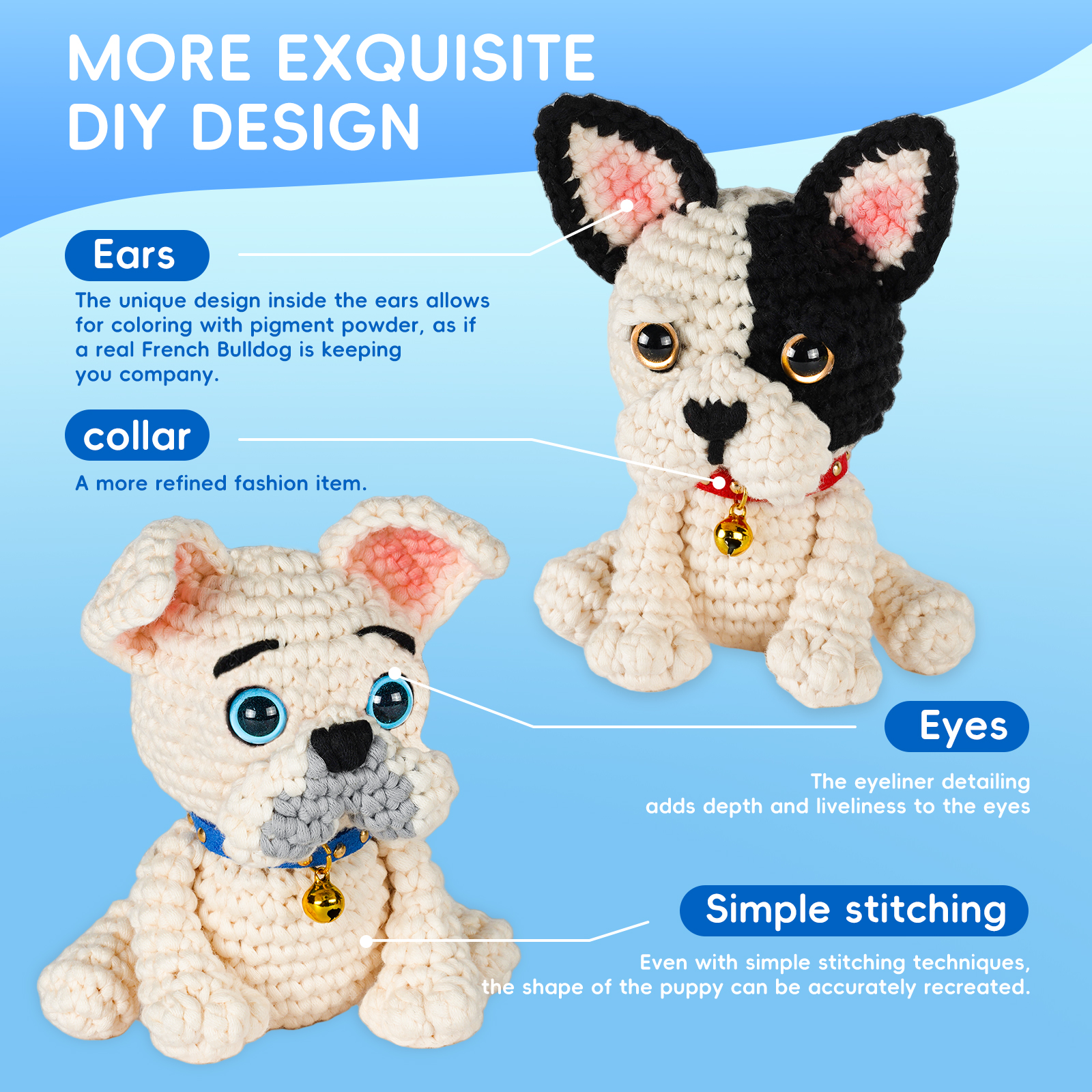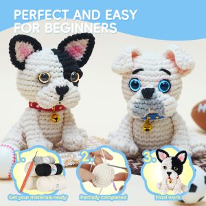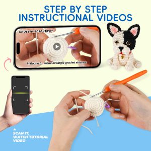 🛍️ Kit Includes All You Need – This crochet kit for beginners has an ergonomic crochet hook, beginner-friendly yarn, stitch markers, safety eyes, blunt needle, stuffing, PDFs, and video instructions.