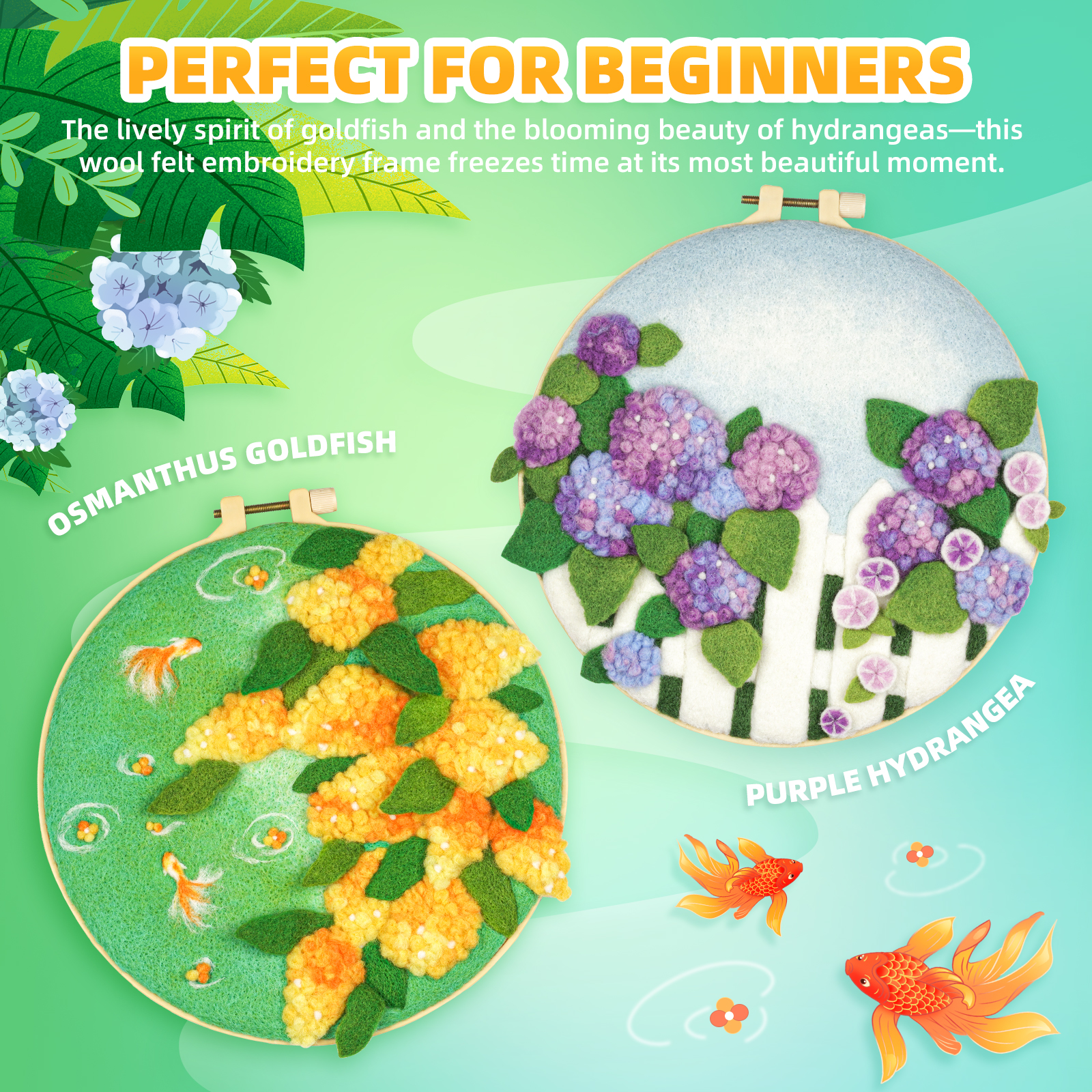 Wool Felt DIY Kit-Purple Hydrangea & Golden Osmanthus