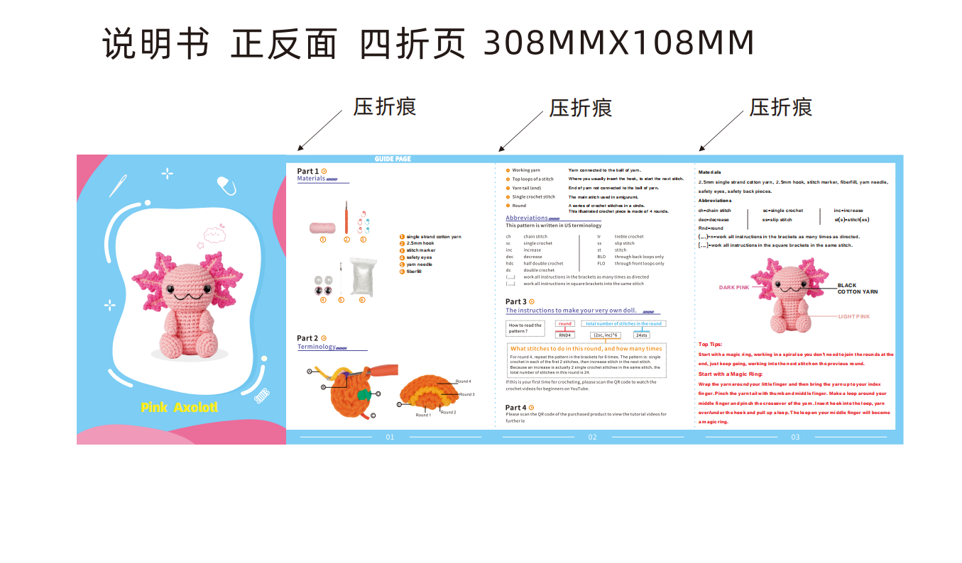 Crochet Kit| XX111-112 Pink and Blue Axolotl